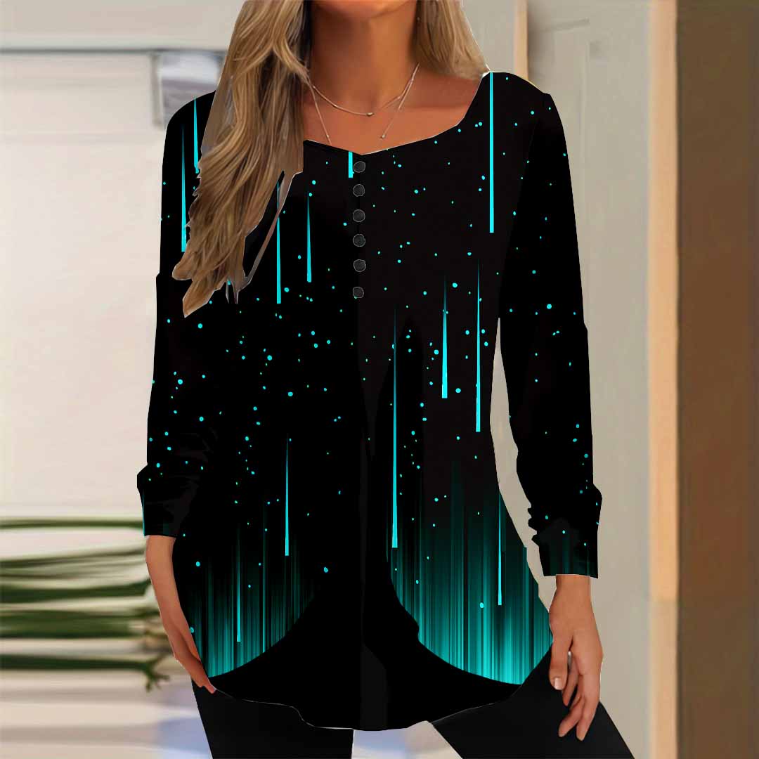 Women Striped,Green DZGG8354 Long Sleeve Scoop Neck Printed Graphic Button Fake 2in1 Tops
