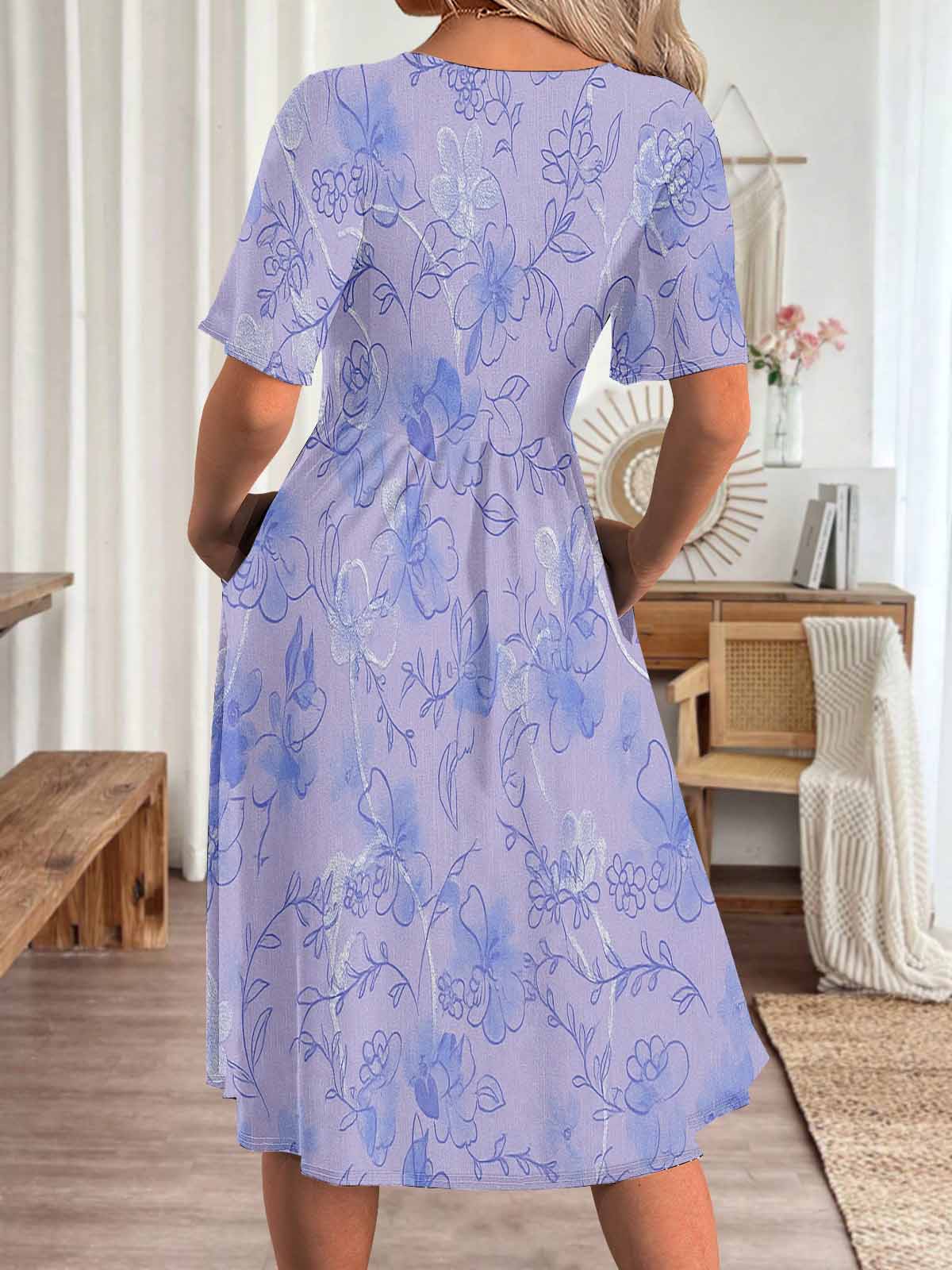 Design: This item is random pattern design and each item is unique. So the pattern position of the item you received maybe slightly different from the picture. Package Included: 1*Dress Composition: Dress: 100% Polyester Fit Type: Regular Care Instruction: Do not bleach Tumble dry with low heat Iron on low heat Machine wash with cold water