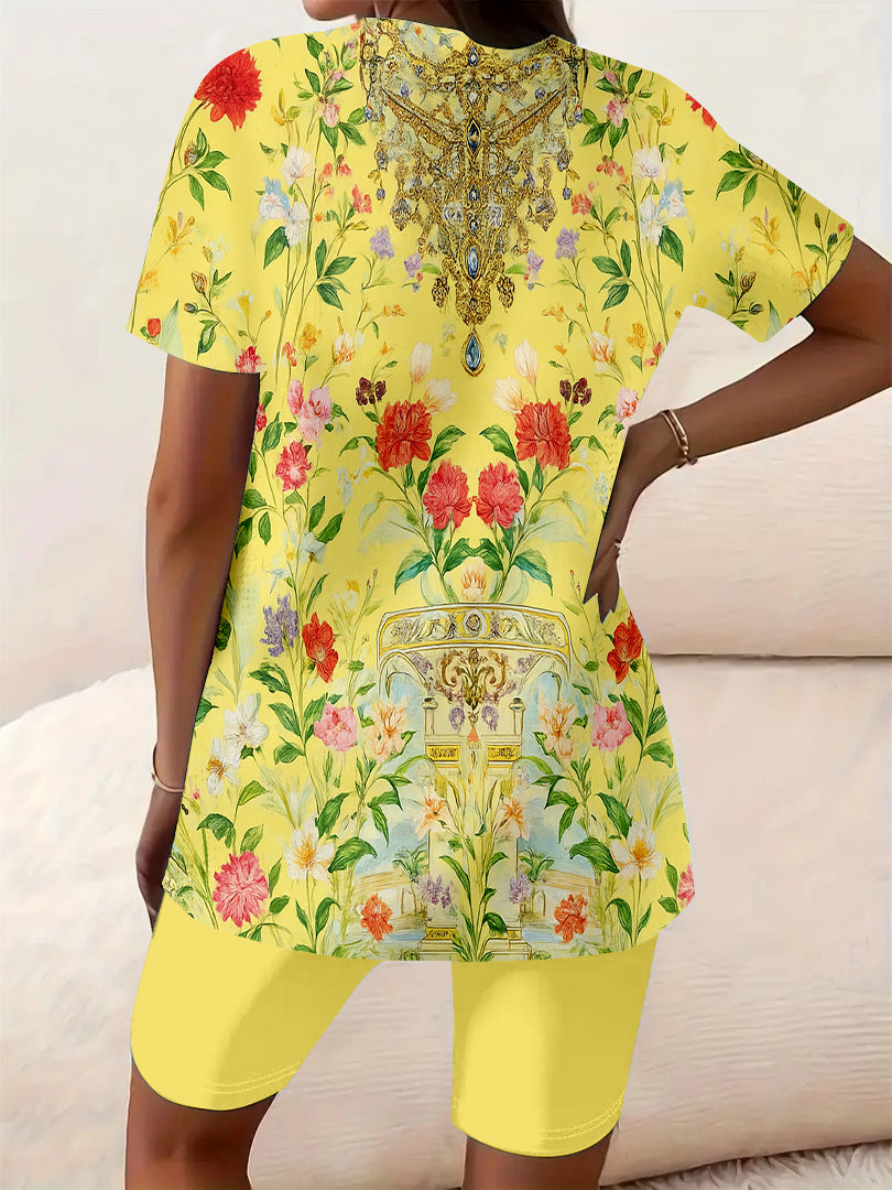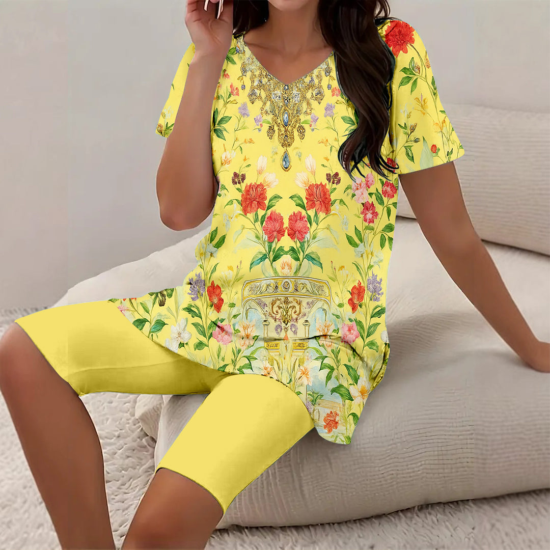 Design: This item is random pattern design and each item is unique. So the pattern position of the item you received maybe slightly different from the picture. Package Included: 1*Top, 1*Shorts Composition: Shirt: 100% Polyester; Shorts: 100% Polyester Fit Type: Regular Care Instruction: Do not bleach Tumble dry with low heat Iron on low heat Machine wash with cold water