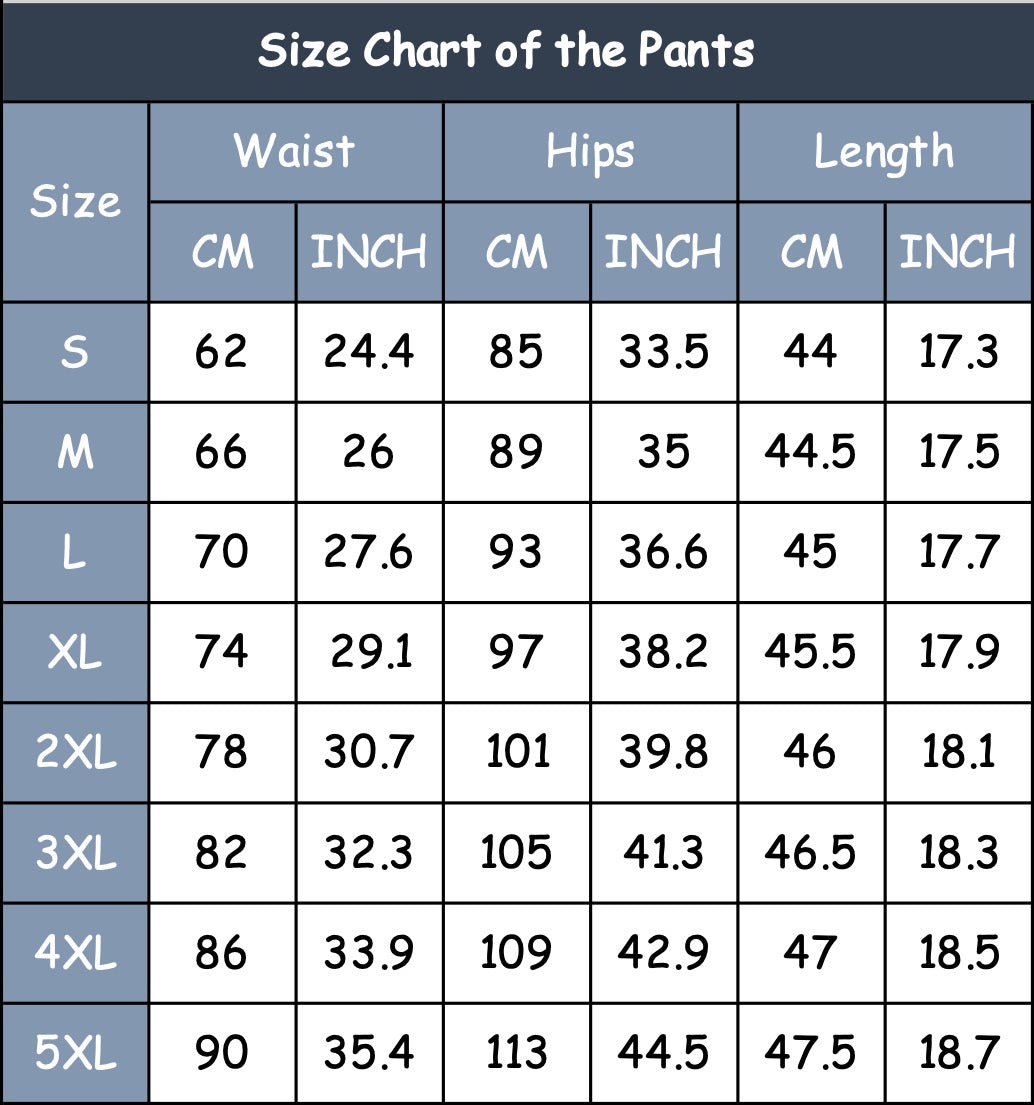 Shorts Size Chart