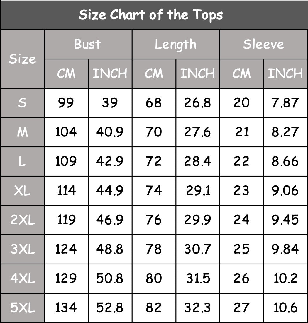 Size Chart of the Tops